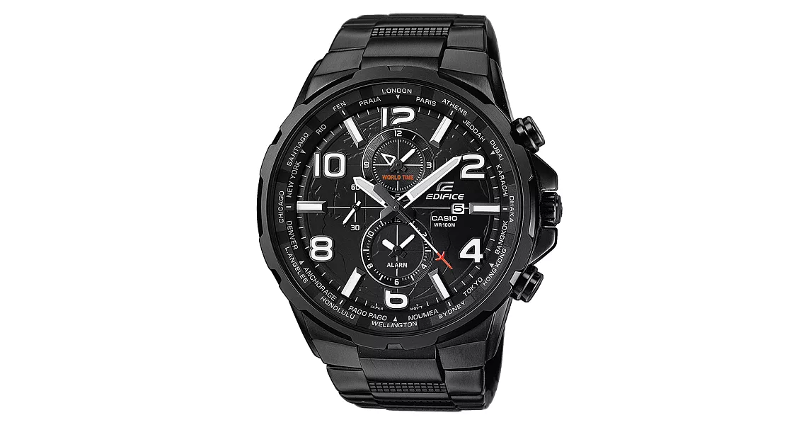 產品說明 CASIO EDIFICE 掌心世界雙眼賽車錶-黑X銀 原廠公司貨世界地圖錶盤世界城市代碼型號:EFR-303D-1AVUDF EDFICE推出全新EFR-303系列,以簡潔的三針三眼設計顯示世界時間(時、分、秒)、鬧鈴時間,搭配世界地圖錶盤設計,外型俐落帥氣。EFR-303D採用不銹鋼錶殼與錶帶,共推出2色錶盤-黑與白。EFR-303L則搭配黑色真皮錶帶及黑色IP處理錶圈,展現氣質仕紳風格。【關於EDIFICE系列】EDFICE 先進設計發想自追求極速及奔馳動感的賽事運動,以智慧型來專為講究質感與生活品味的男性而打造。EDFICE系列錶款具備堅硬不鏽鋼錶殼和100米防水設計為基礎,展現絕佳機能,是發揮力與速度、科技與獨創性之計時錶款;如同男性表現自信能力時散發的迷人風範~這就是EDFICE,專屬男人的風範。◆品牌:CASIO EDIFICE◆型號:EFR-303D-1AVUDF◆機芯:原廠機芯,動力:電池◆材質:不鏽鋼錶殼、不鏽鋼錶帶、強化玻璃鏡面◆尺寸:錶殼約45MM(不含錶耳)/厚約11MM、鏡面直徑約40MM◆錶帶:長約20CM/寬約22MM、重量約160G◆功能:日常生活防水100米.世界時間.世界城市代碼.鬧鈴.日期顯示◆配件:原廠公司貨,保固1年。附原廠精緻包裝、廠商保證卡。◆注意事項:游泳或洗澡時請勿配戴,以維持其正常防水功能。※商品圖檔顏色因電腦螢幕設定差異會略有不同,以實際商品顏色為準。 |